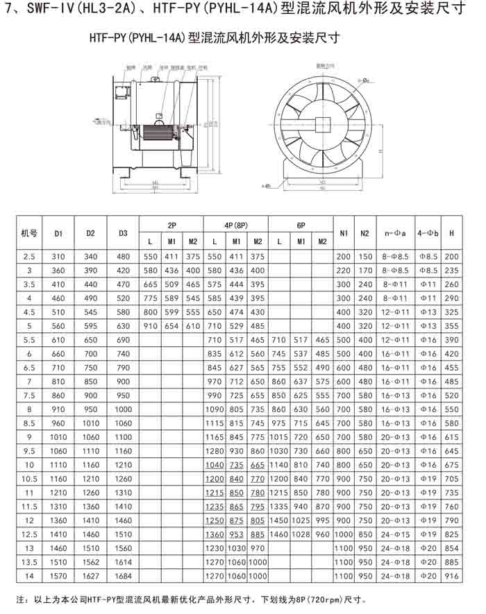 三、SWF-IV(HL3-2A)、HTF-PY(PYHL-14A)系列節(jié)能混流風(fēng)機